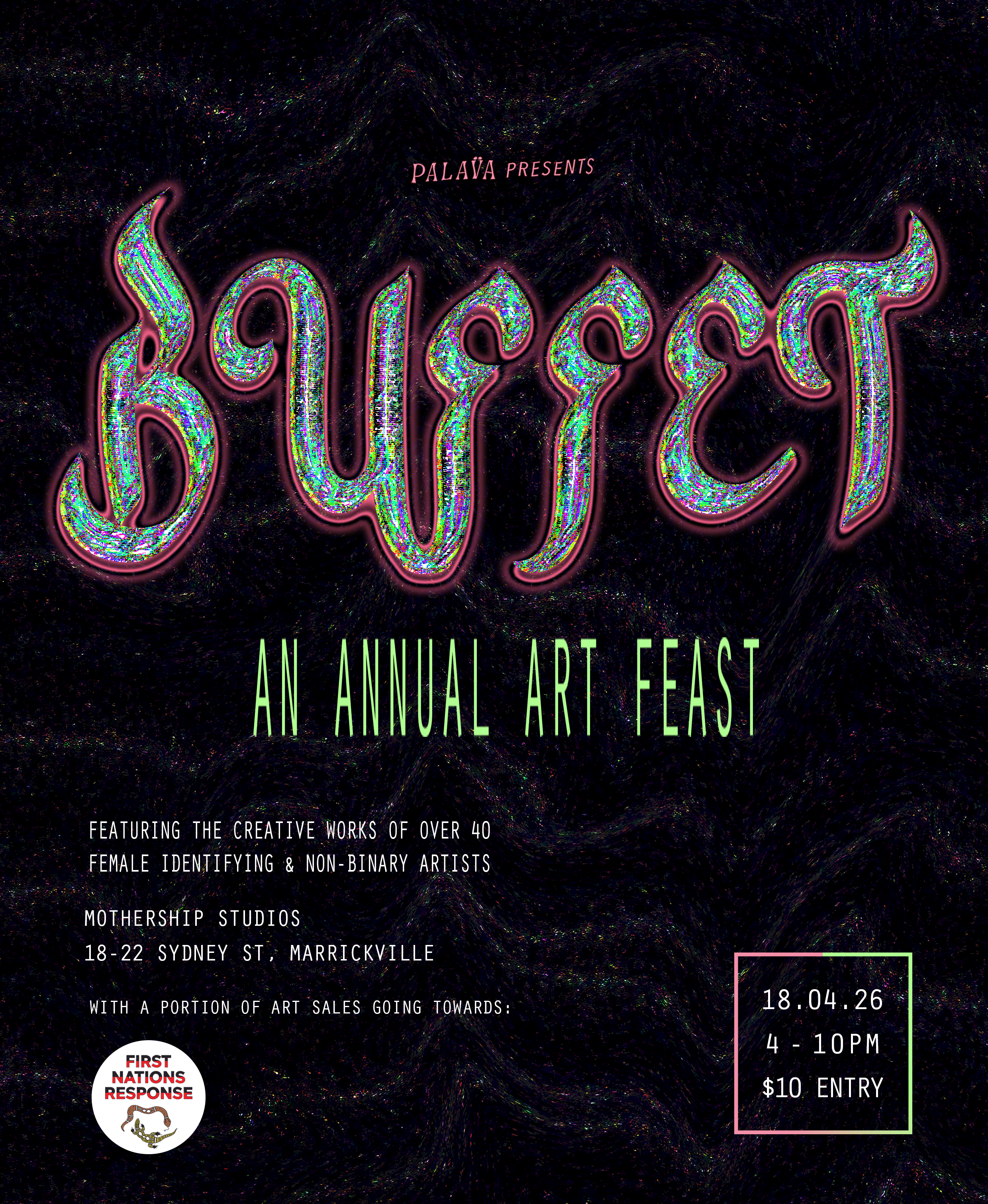'buffet: an annual art feast' is palava’s fifth annual mega group show. Come join us in devouring the work of more than 40 female-identifying and non-binary artists! featuring the work of: